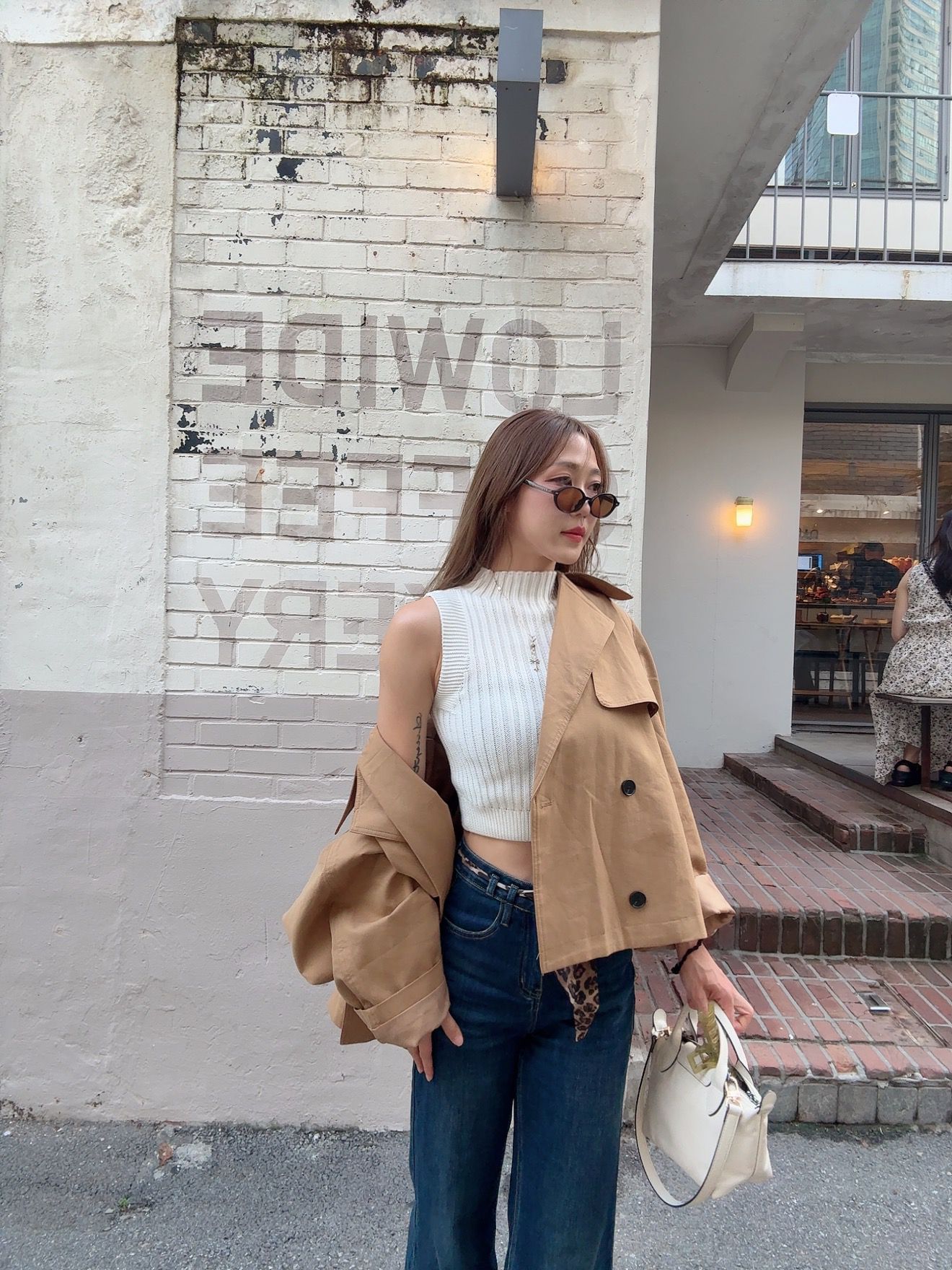 KR- 美肩薄薄早秋彈力Top(藍/白/黑)