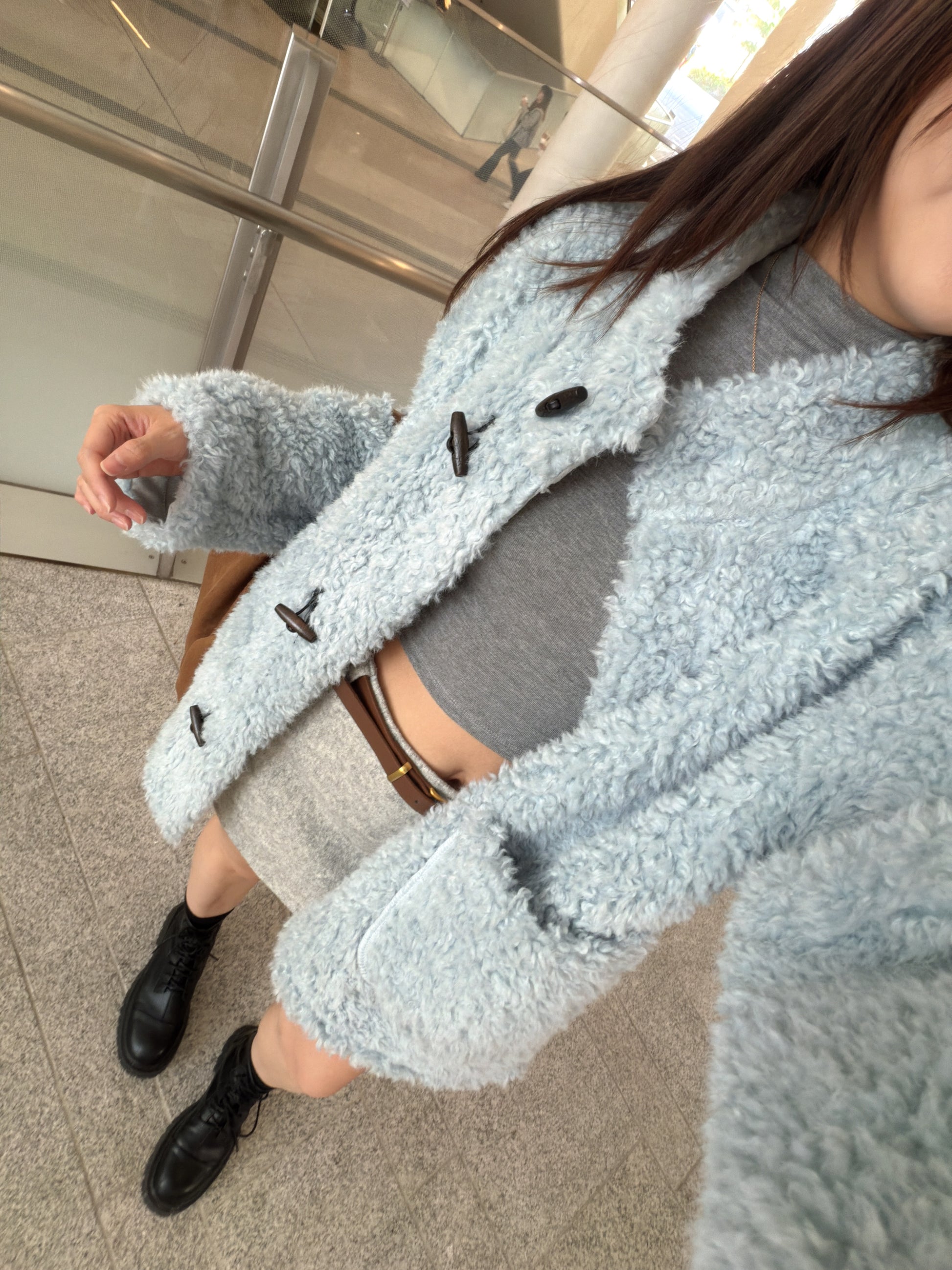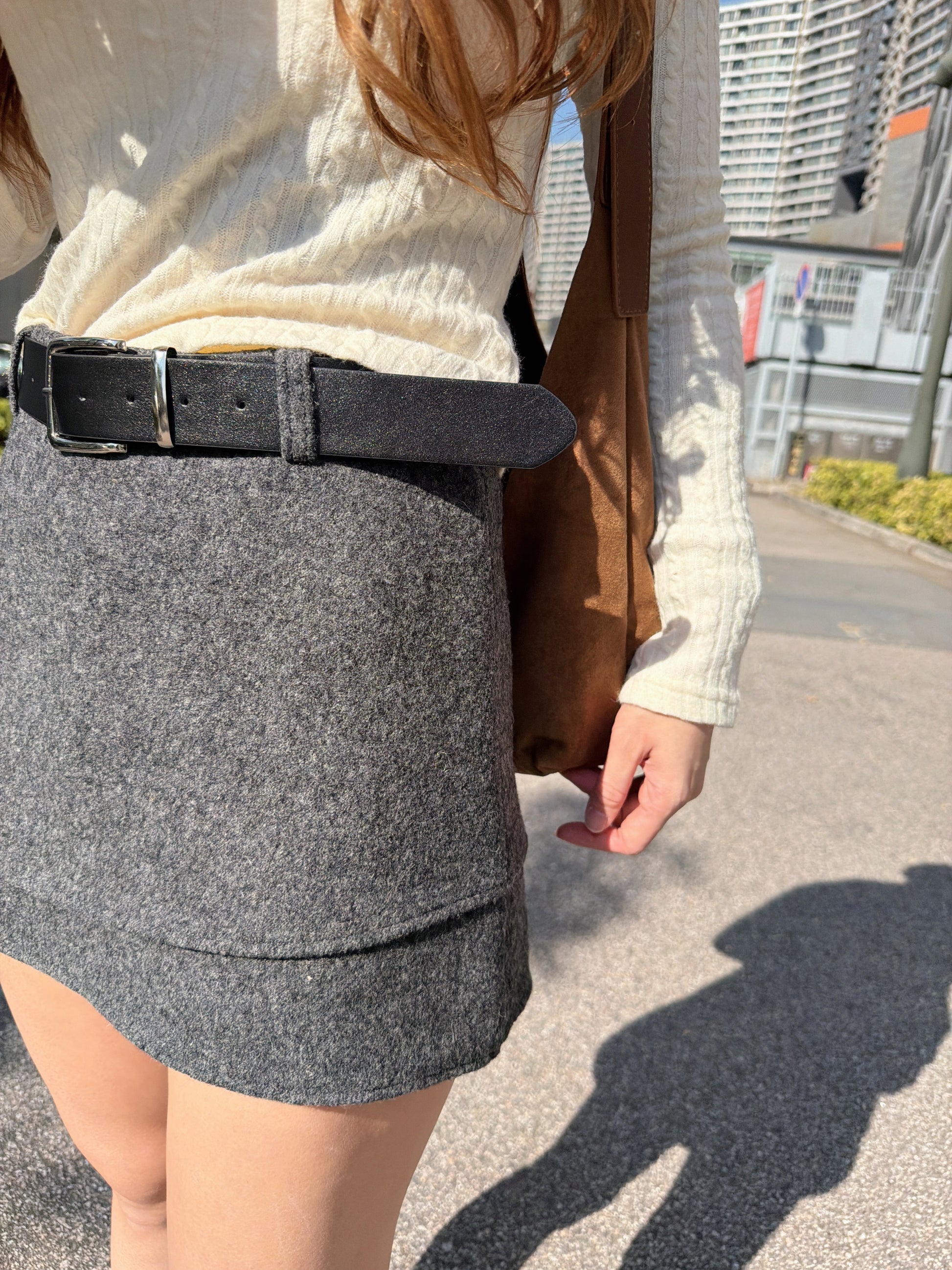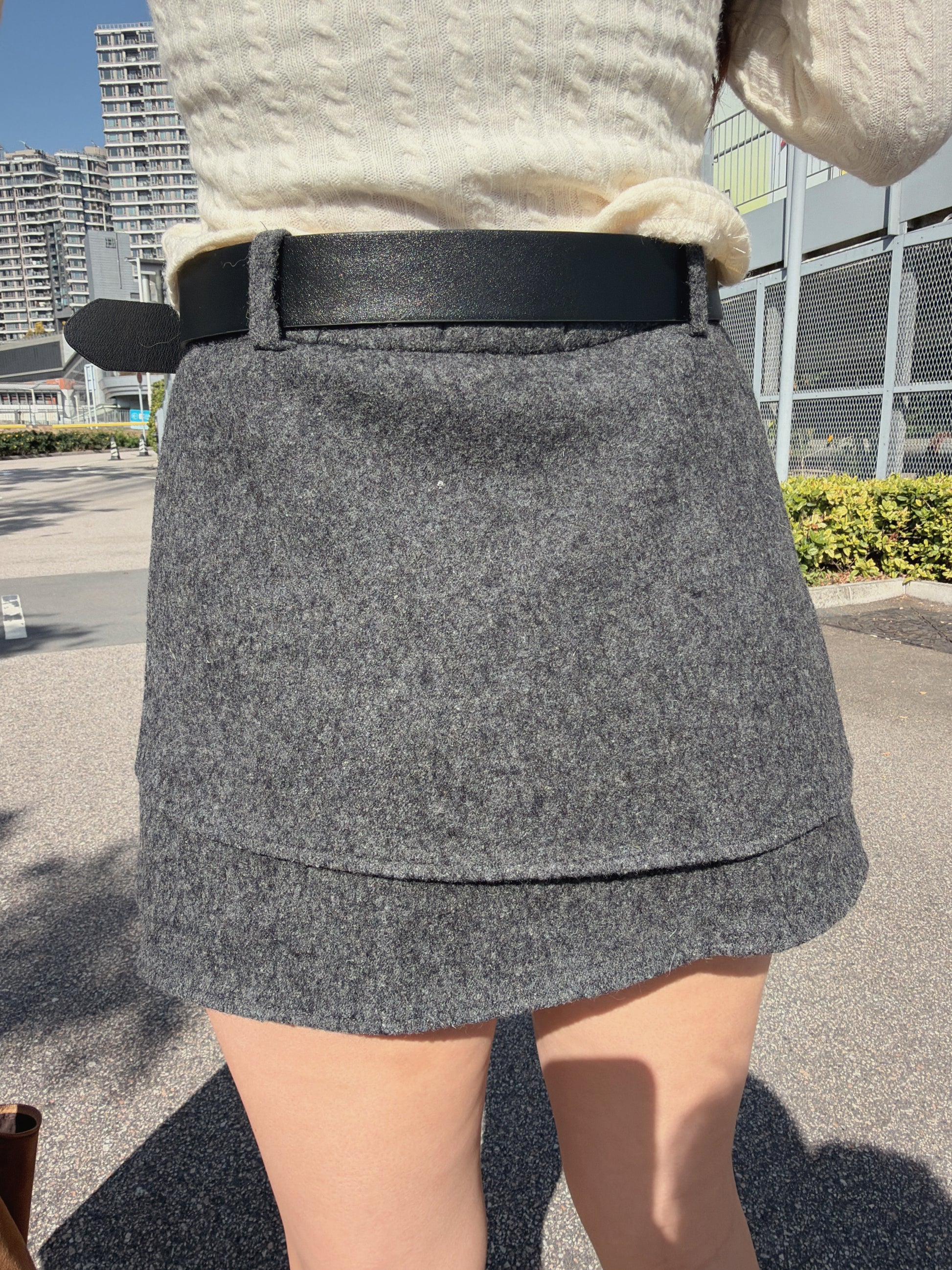 最美cutting! 絨面海浪邊半身裙(包皮帶)(深灰/淺灰)