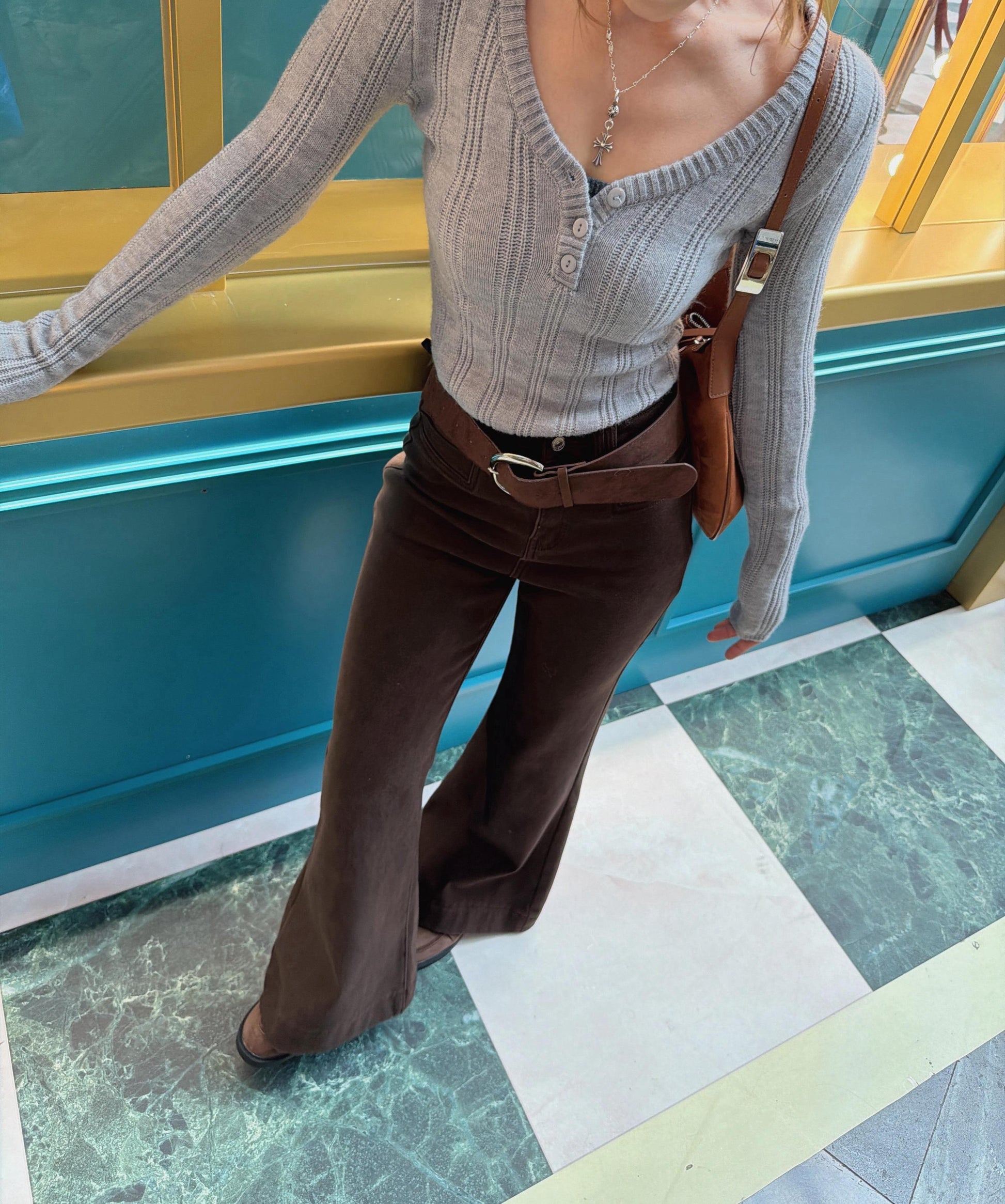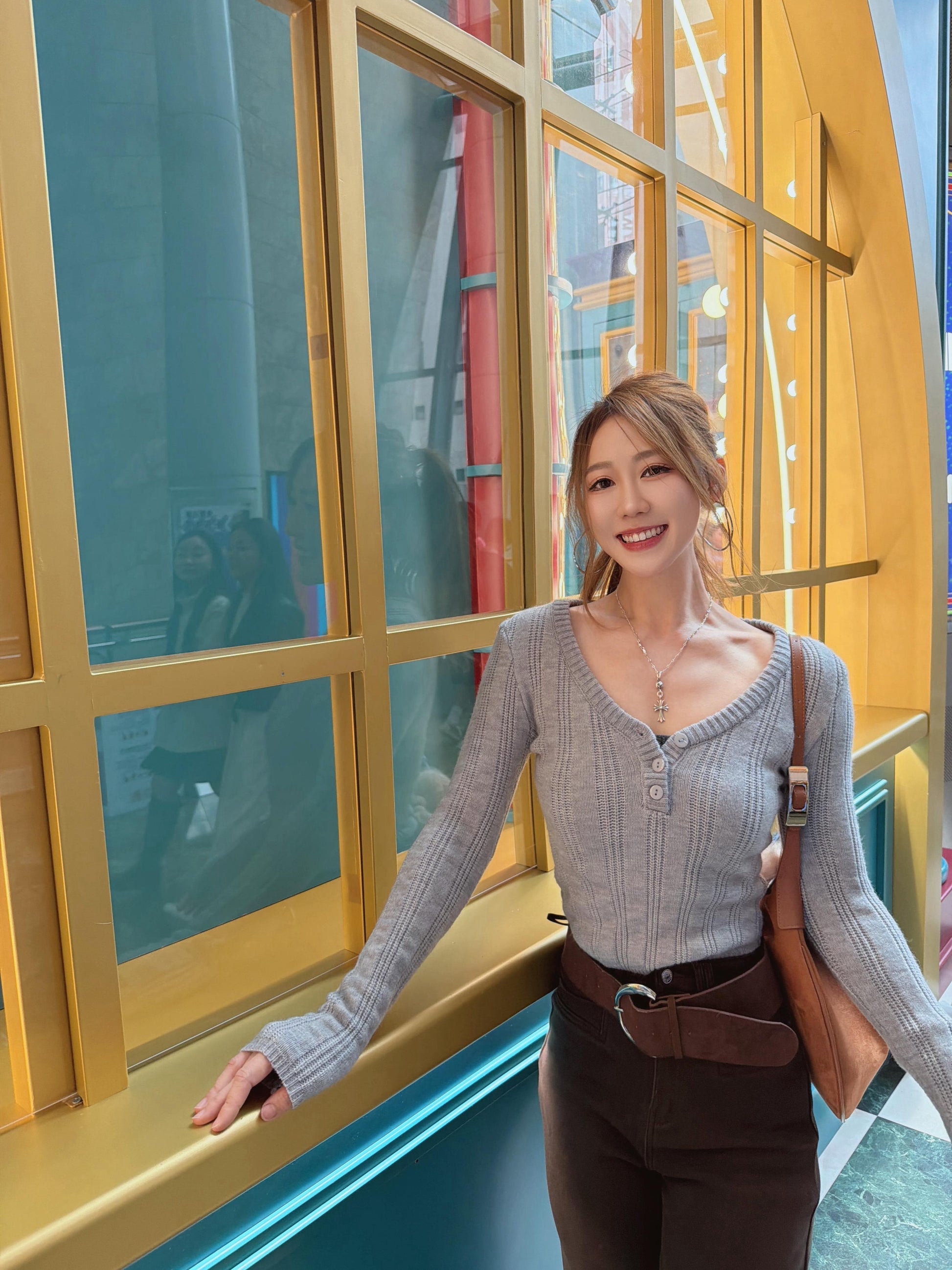 超顯瘦歐美V領針織上衣(灰)