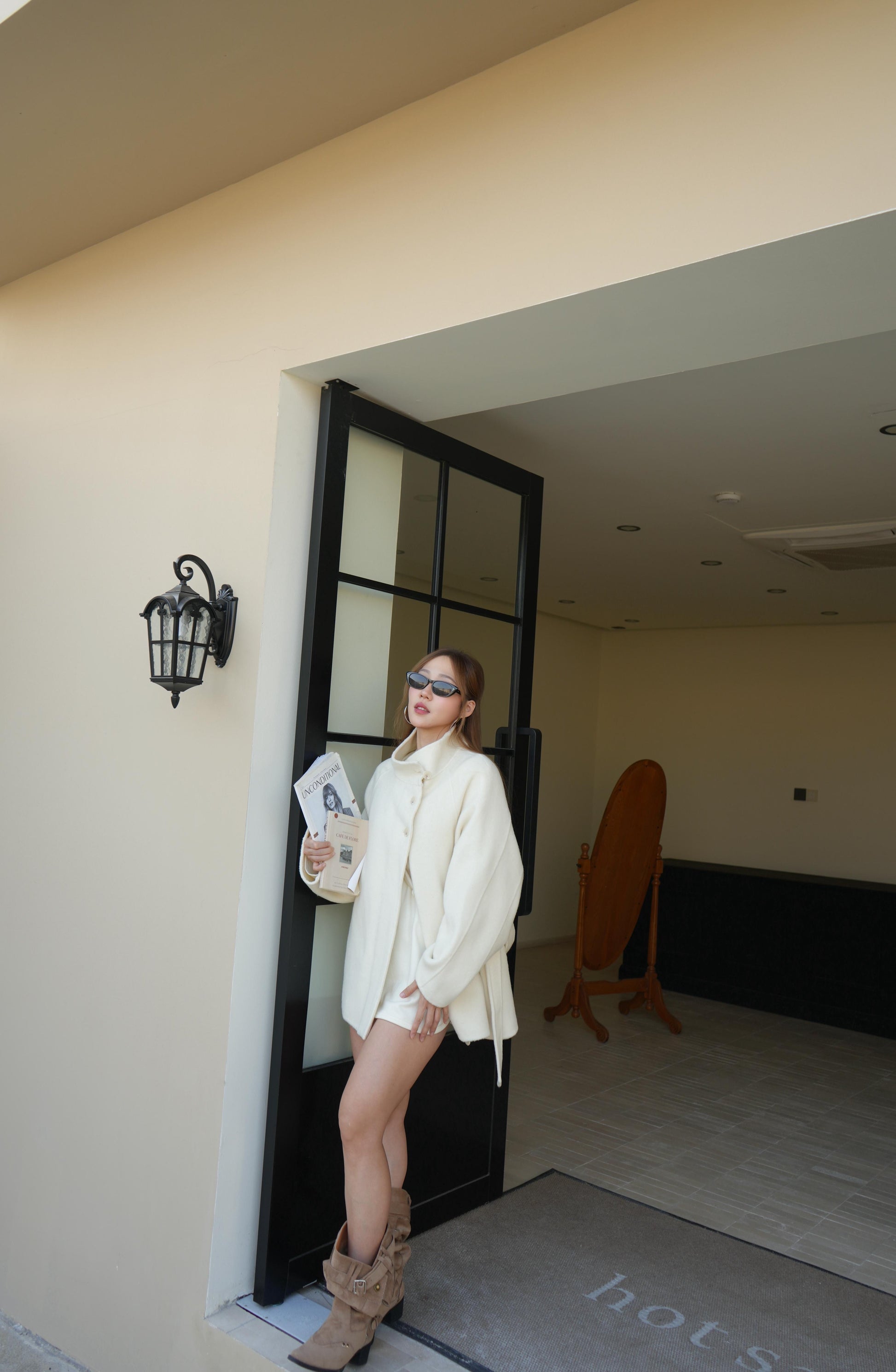 CU-冬日雪白高級羊絨外套