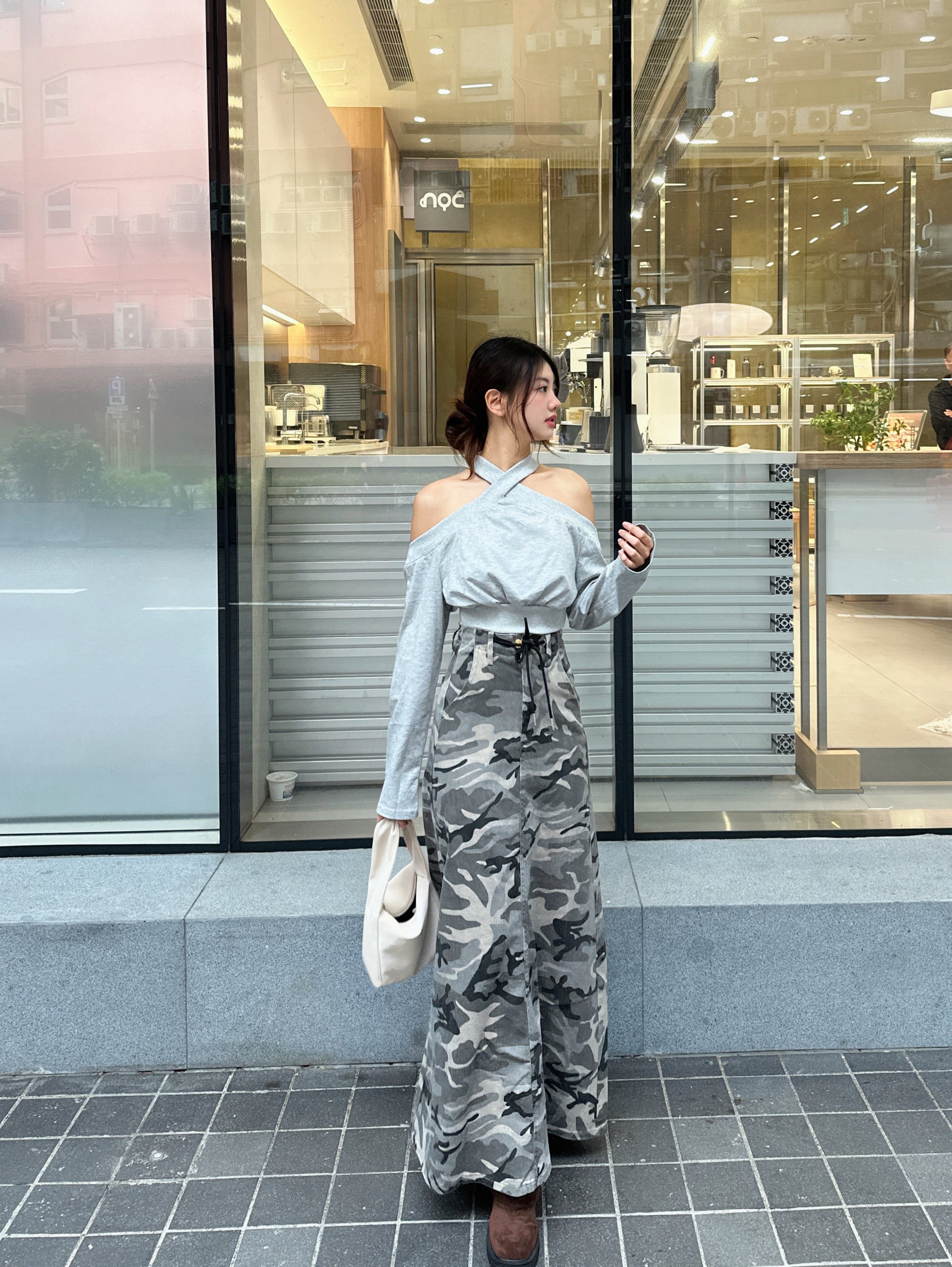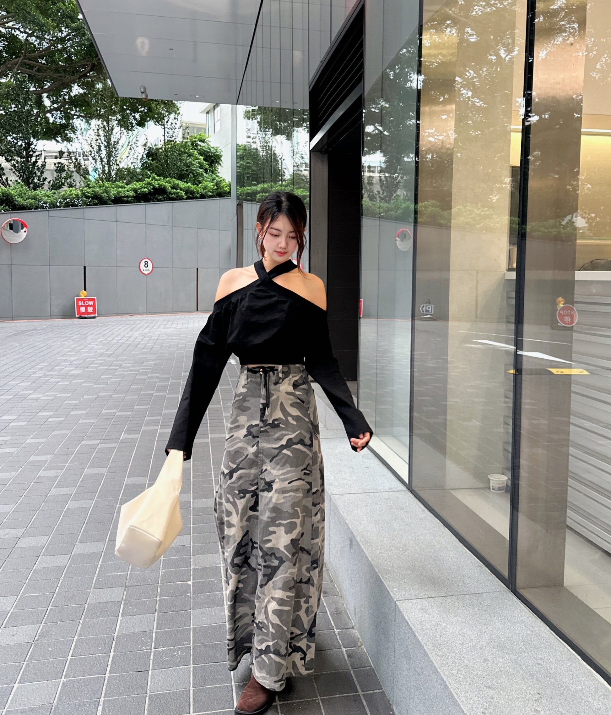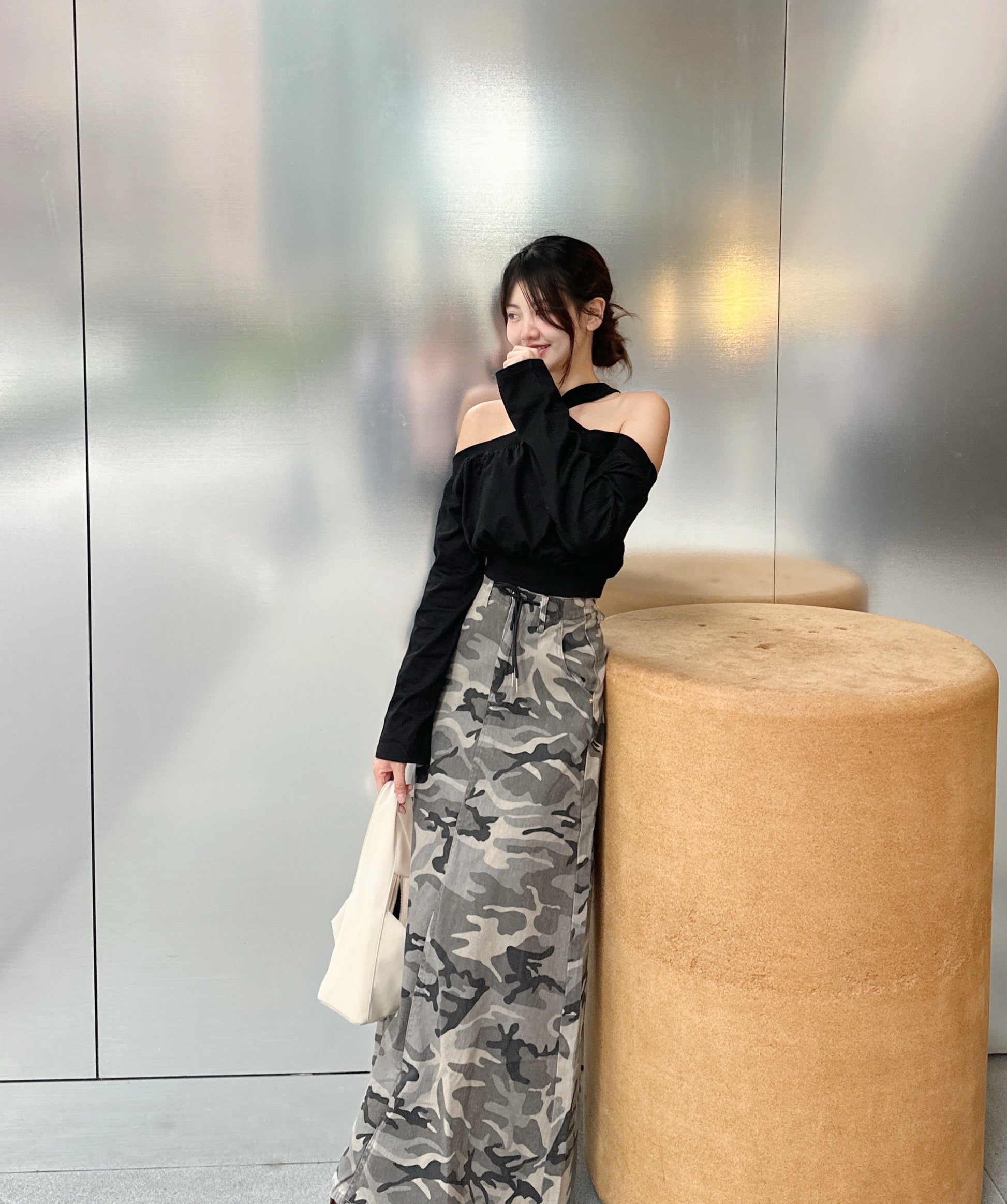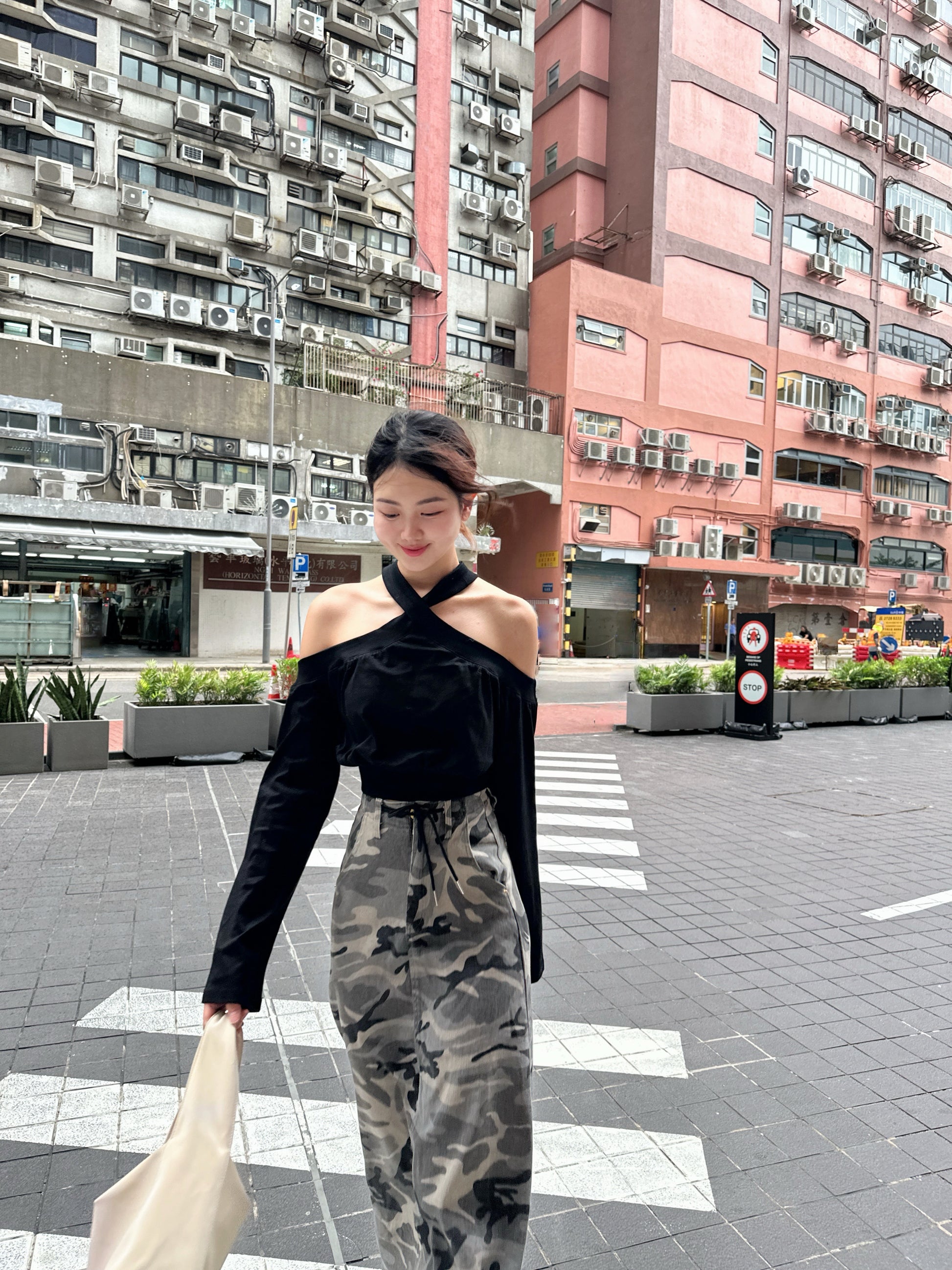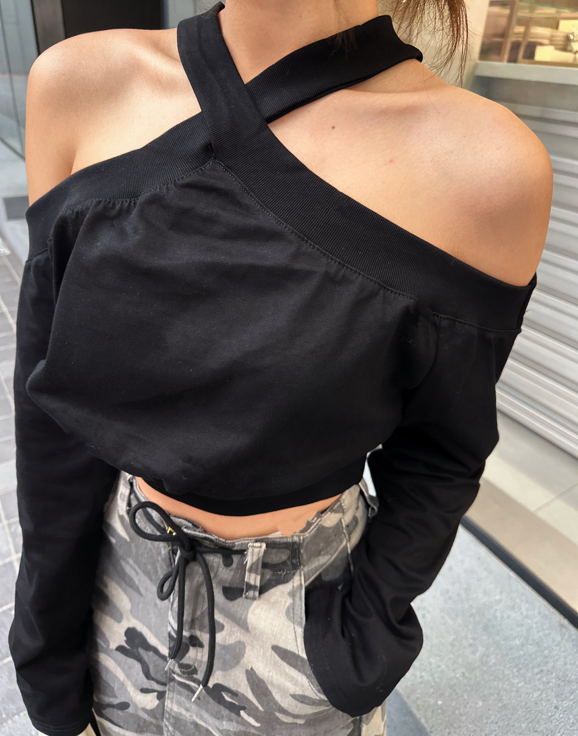 CU- 短身衛衣直角肩上衣(黑/灰)